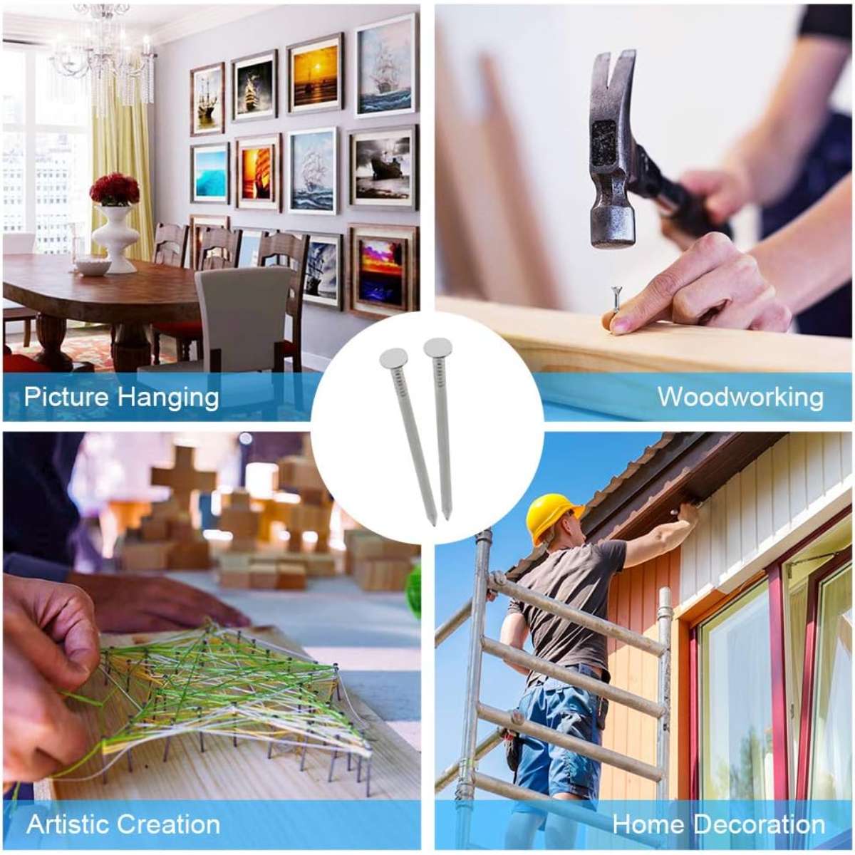 【Use Widely】 This set of steel nails can be used for all kinds of woodworking projects at home or at work, produce long-lasting results with high quality, such as hanging photos, making crafts, or repairing generally, this combination will be your best choice. For DIY enthusiasts, the assorted nails deliver comprehensive and durable help.