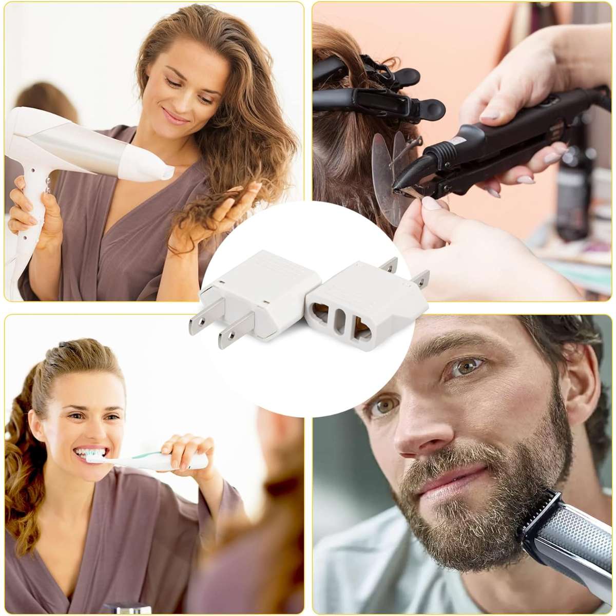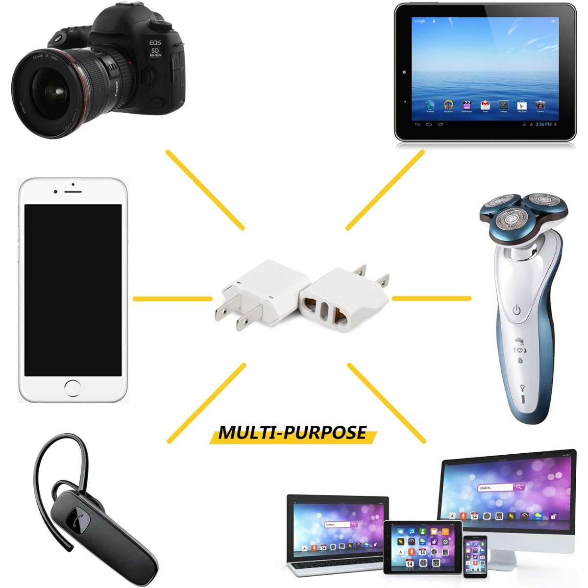 What You Get: A set of 6 pcs European to US plug adapters(white), our 7*24 friendly customer service for peace of mind.