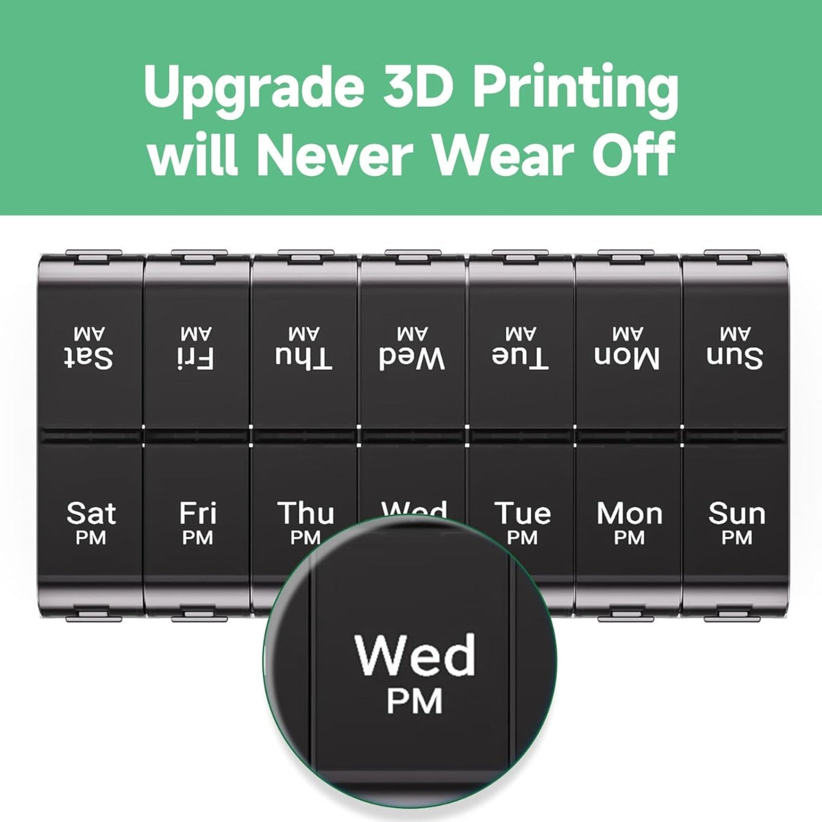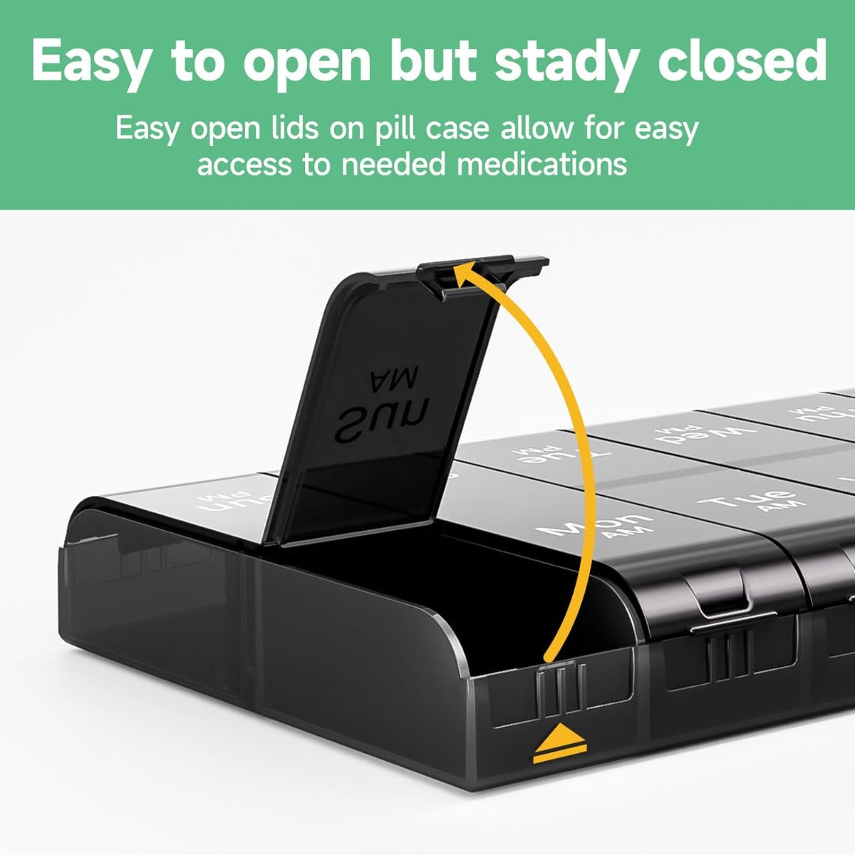 7 days Oversized Pill Box Oversized Daily Pill Box, Large Pill Box (black