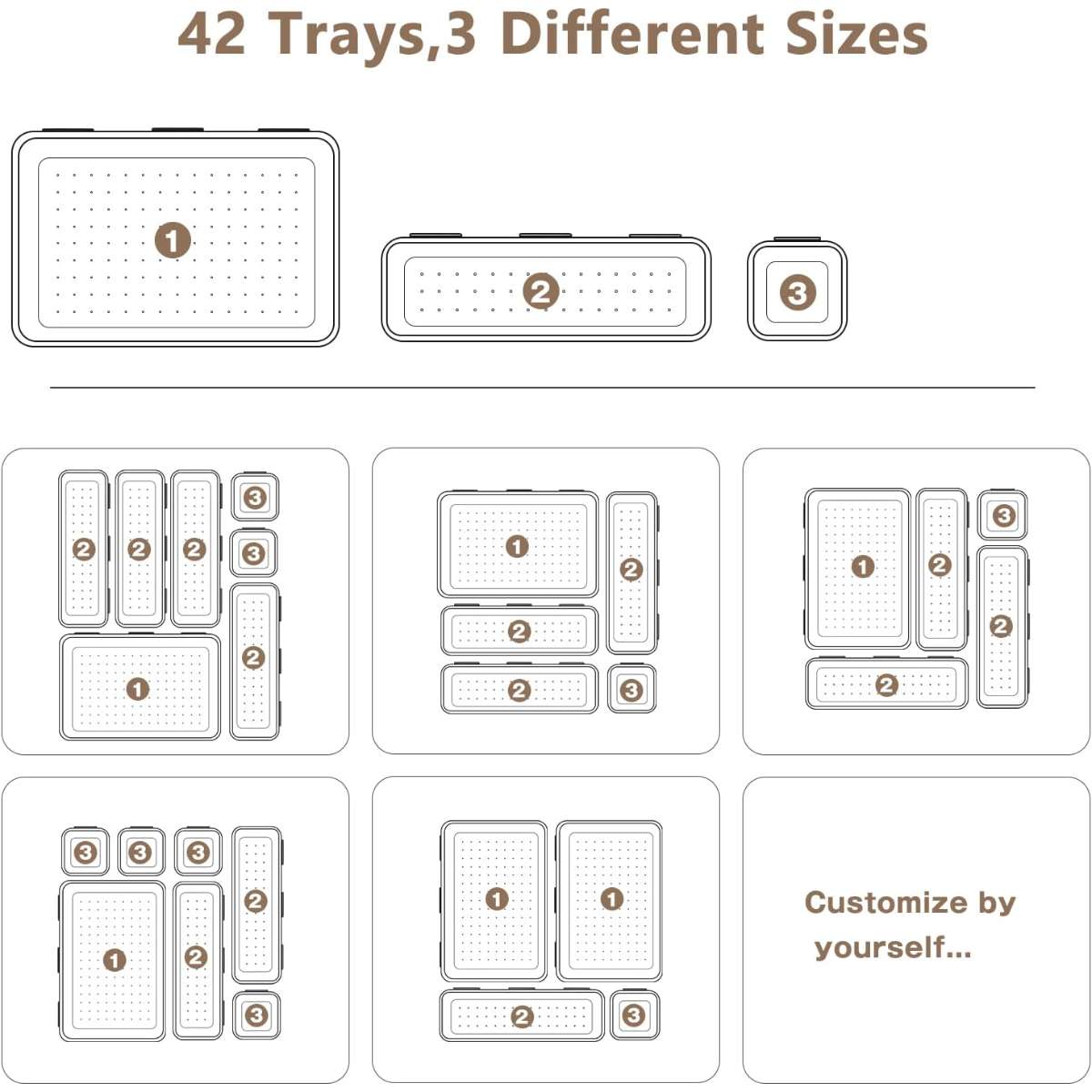 【Various Usage Scenario】 These 42 tool chest organizers are perfect for organize your toolbox, tool cart, roller tool chest, workbenches and so on. Will fit inside shallow drawers and in standard tool boxes.And these tool storage box can also use in the kitchen, bathroom, vanity makeup, or office — this multipurpose desk drawer organizer tray shallow keeps your things in order. You can freely mix and match