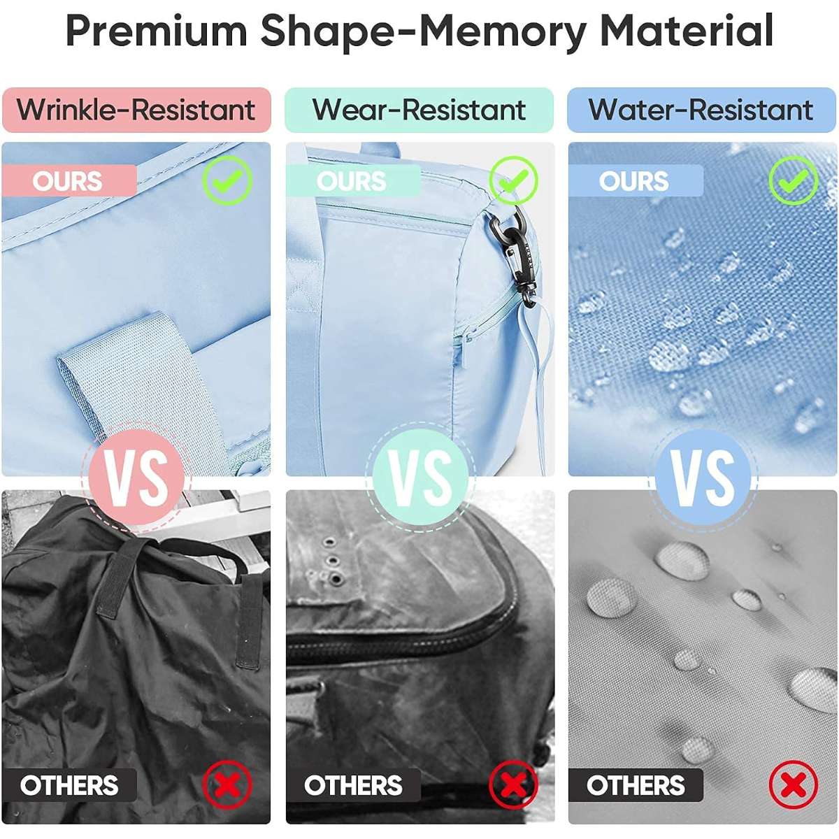 [LIGHTWEIGHT & WATER PROOF DUFFLE BAG] Our duffle bags are made with 294T Twill Fabric. They are soft, washable, waterproof, wrinkle-free, and wear-resistant. Waterproof exterior keeps your clothes and items dry; it can be used both indoor and outdoor. Duffelbag with handles, and removable shoulder strap with adjustable buckle.