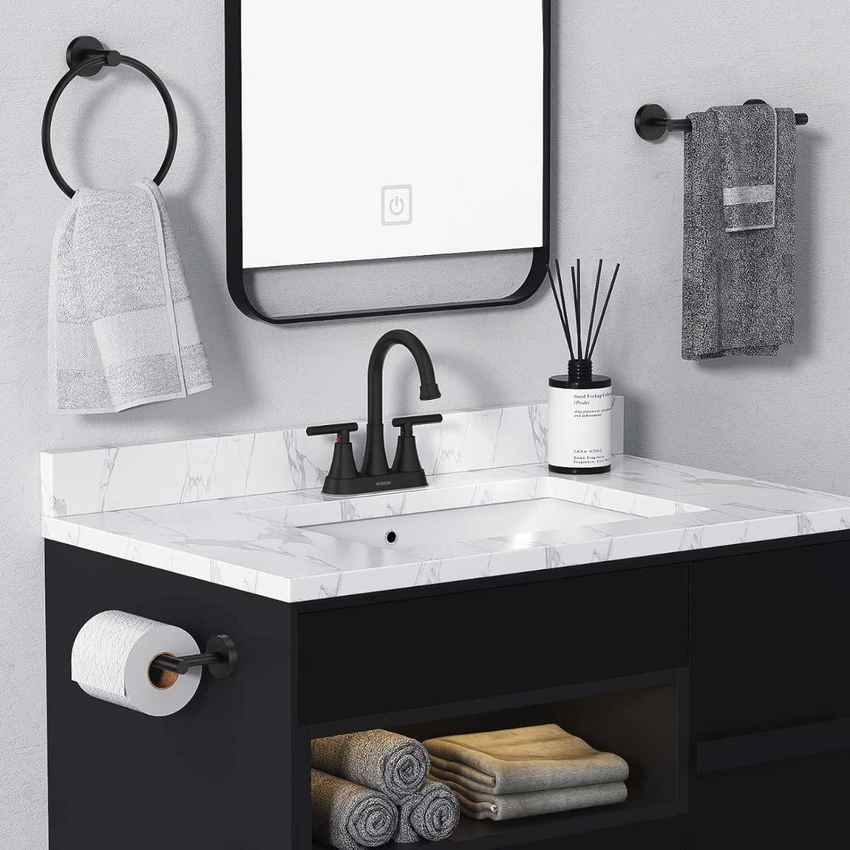 🏡MODERN BATHROOM FAUCET FOR ANY DECORATING STYLE: Smooth Matte Black Finish faucet for bathroom sink, resist fingerprints and water spots for a fresh new looking. Utility remodel faucet for bathroom sink, powder room, RV sink, travel trailer, camper, laundry room, farmhouse bathroom, restroom sink, rental houses.