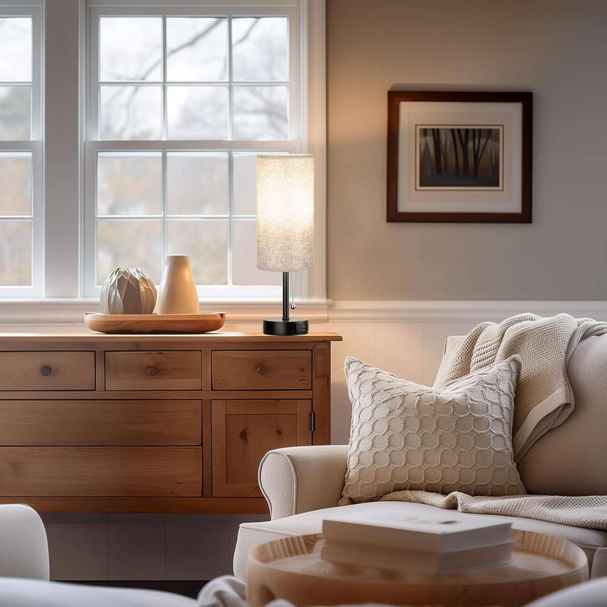 2. USB-A & USB-C Charging Ports - Power 2 devices at once side table lamp! With added feature of 2 usb sockets (5V/2.1A) on the bedside lamp, it get your phones, pad, laptops, humidifier, kindle, headsets, speaker, earbuds and other electronics fully charged all from the night stand lamp for room no matter if the bedroom nightstand lamp is on or off.