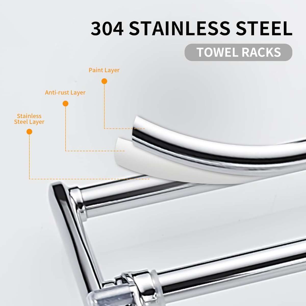 Stainless Steel Material - The towel holder and towel hooks are made up of stainless steel construction, ensuring durability and dependability