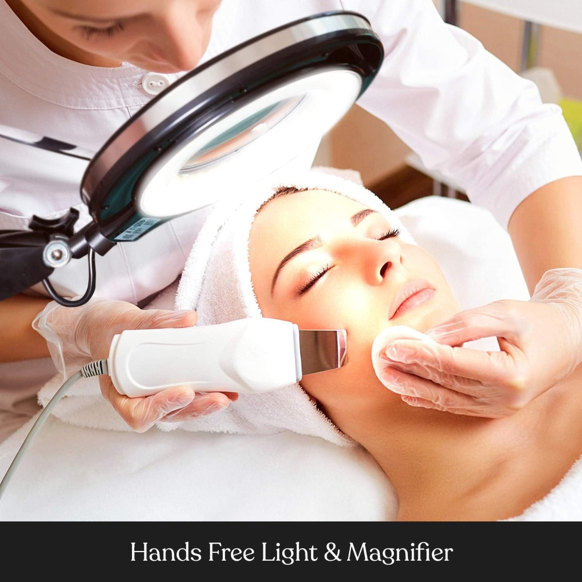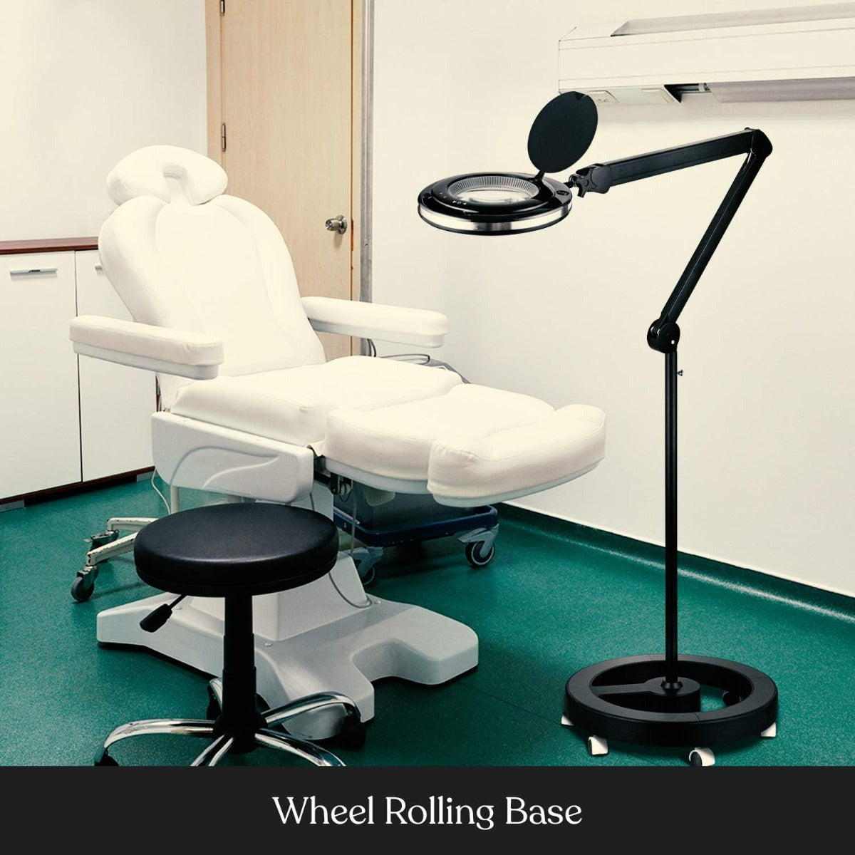 Magnifying Floor Lamp with 6 Wheels: This floor lamp for reading has multiple testimonials from aging customers and those with macular degeneration, which requires extra light and magnification for full contrast and details. The magnifying floor lamp has 6 wheels that roll easily, which is ideal for estheticians, spas and salons, beauticians, dermatologists, tattoo artists, jewelers, dentists, etc. Great for use with lash extensions, facials, and similar treatments under bright LED light.