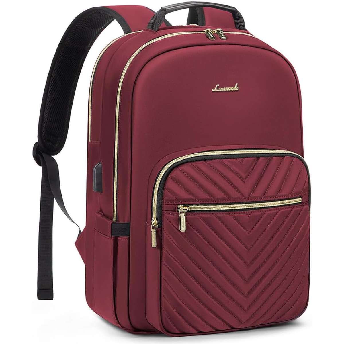 💯【Upgraded Laptop Backpack Women】: Classic V-shaped embroidery thread. Upgraded double LOVEVOOK no-slip metal zippers,water resistant Nylon fabric with polyester lining, ensures long lasting usage. Total of 4 compartments and 16 pockets for your computer,A4 folder,bottles,umbrellas,clothes,work supplies,college supplies and travel essentials.Dimensions: 12"L 17"H 7.5"D, Weight: 1.7lbs.