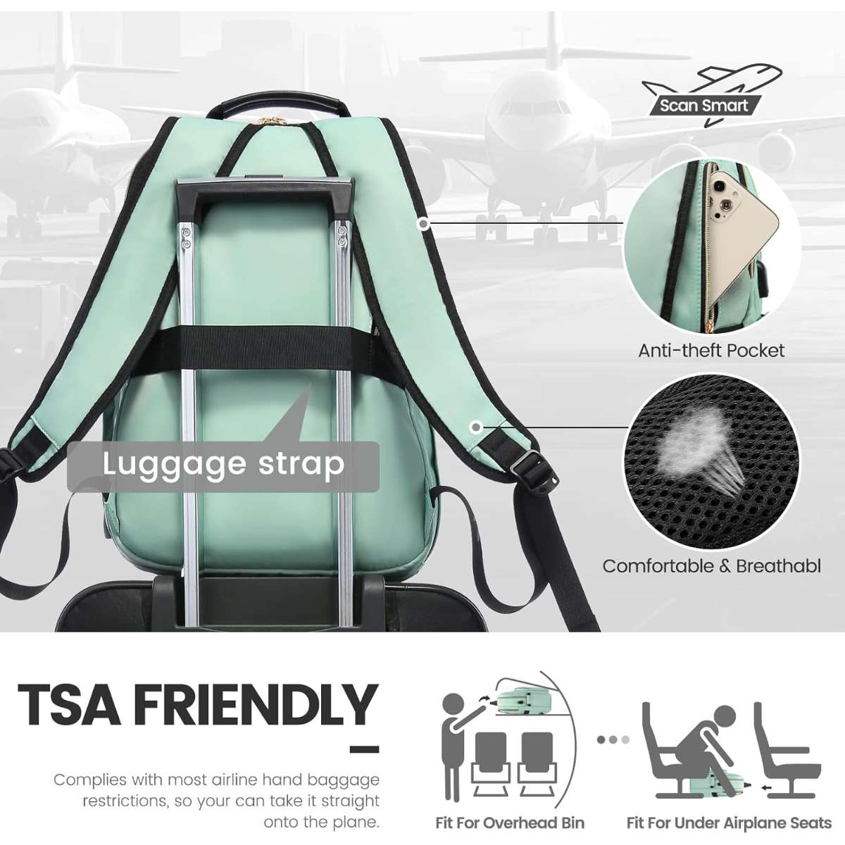 🚀【Great Travel Backpack for Traveling on Airplane with USB Charging Port】: Perfect size to fit under the seat on airplane and attaches to the raised handle of the suitcase for easy traveling. With inside charging cable and outside USB port, the carry on backpack provides a more convenient and easier way to charge your devices.No need to keep power bank on the hand, make life easier.