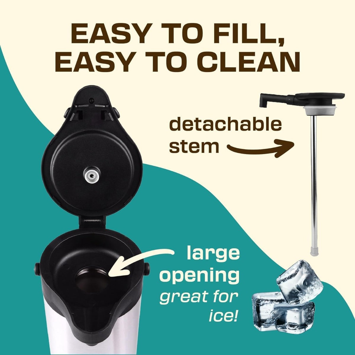 Easy to Use, Built to Last: This big thermos is designed for effortless operation and unmatched durability, our thermal carafe for hot drinks simplifies your daily coffee rituals. Its portable hot coffee dispenser design ensures you can enjoy your favorite beverages anywhere, anytime whether it be a soccer game, meeting, or anything in between.