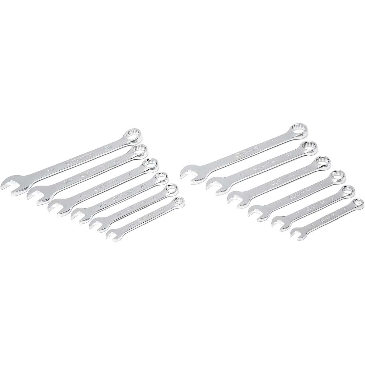 Shallow and deep SAE/metric 6 point full polish chrome sockets with stamped size markings for easy socket identification