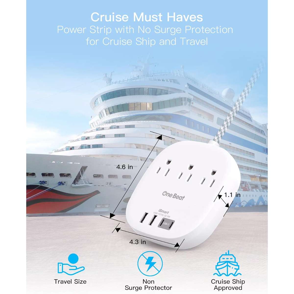 【Cruise Accessories Must Haves 】- The small cruise power strip with NO surge protection, it's absolutely a must have Home and Cruise Ship accessories as Cruise lines require that power strips DO NOT have Surge Protection. Compact and lightweight, easy to carry and best for travel.