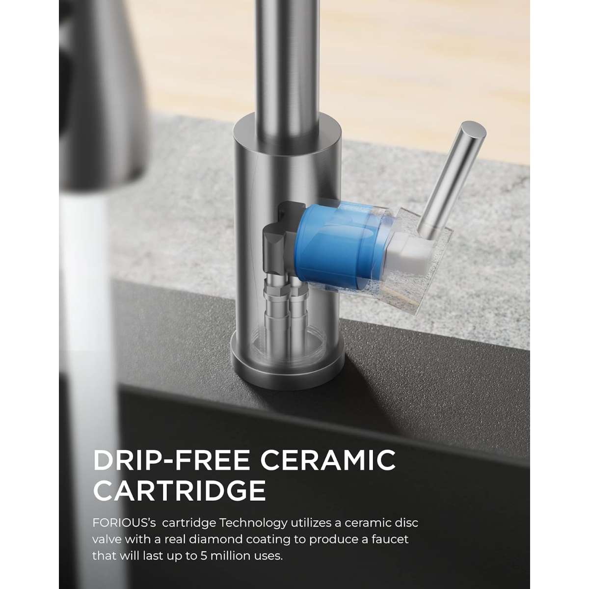【Ultra High Quality】This kitchen faucet with a pull-down sprayer is safe and durable, according to lead-free requirements thanks to its premium SUS 304 stainless steel construction. Featuring drip-free ceramic cartridges and integrated aerators, Our kitchen sink faucets save 20% on water at 1.8 GPM under 60 PSI pressure. Includes high-temperature-resistant PEX hoses to prevent leaks and bursts. With FORIOUS, your family's health and your well-being always come first!
