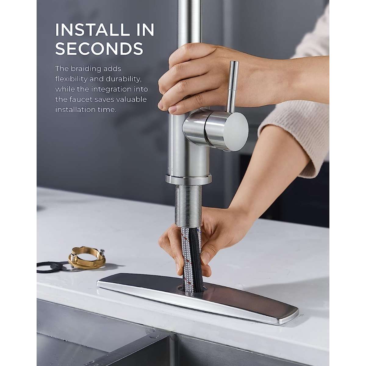 【Minutes to Install】Install our kitchen faucet effortlessly with just one person. Our sink faucet includes a 10-inch detachable deck plate suitable for sinks with one, two, or three holes, ensuring versatility. All mounting hardware is included, saving you both time and money. Get your FORIOUS kitchen faucet up and running in less than 15 minutes, no professional help is needed!