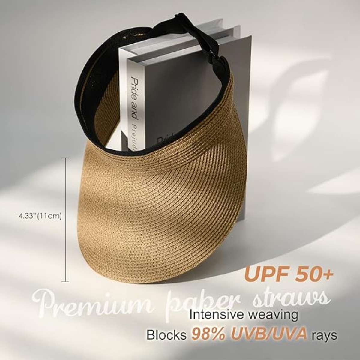 High-quality paper straw material: Womens visor is tightly woven to ensure that the straw hat is durable and comfortable, and the sun will not directly hit your face through the gaps;