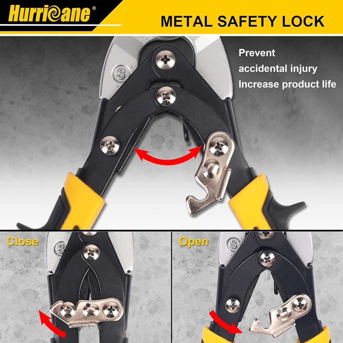【Straight Regular Cut】 10 Inch Cr-Mo Blade High Leverage Aviation Tin Snips, Cuts straight and wide curves to the left and right, ensure a secure hold and precise cuts. Ideal for Cutting Sheet Metal, copper, aluminum, plastic, thick cardboard, chicken wire, and hardware cloth.