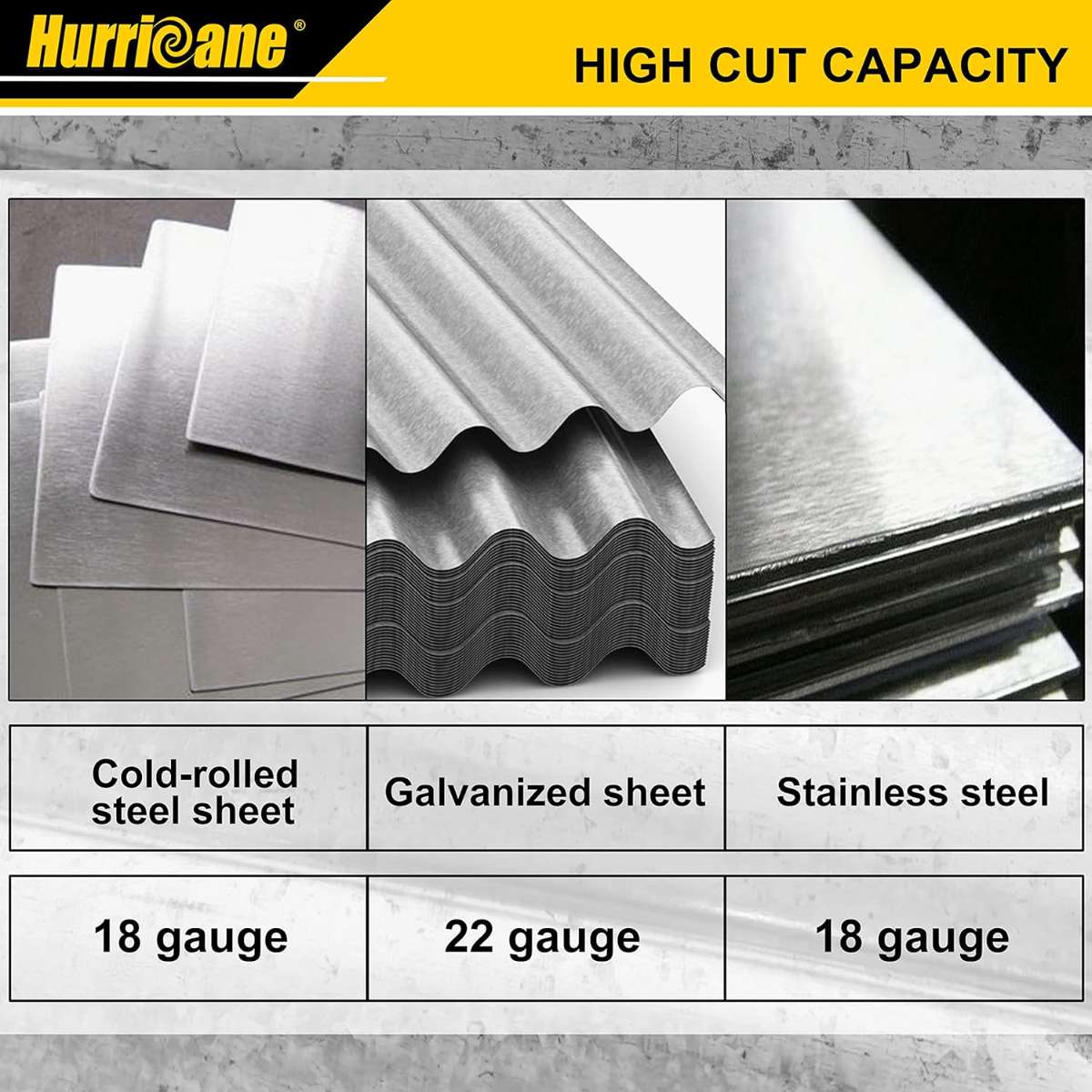 【Cut Capacity of Tin Snips】 10 Inch tin snips with a cutting thickness range up to 18 gauge (1.2mm) cold-rolled steel sheet, 18 gauge (1.2mm) Galvanized sheet, and 22 gauge (0.7mm) stainless steel.