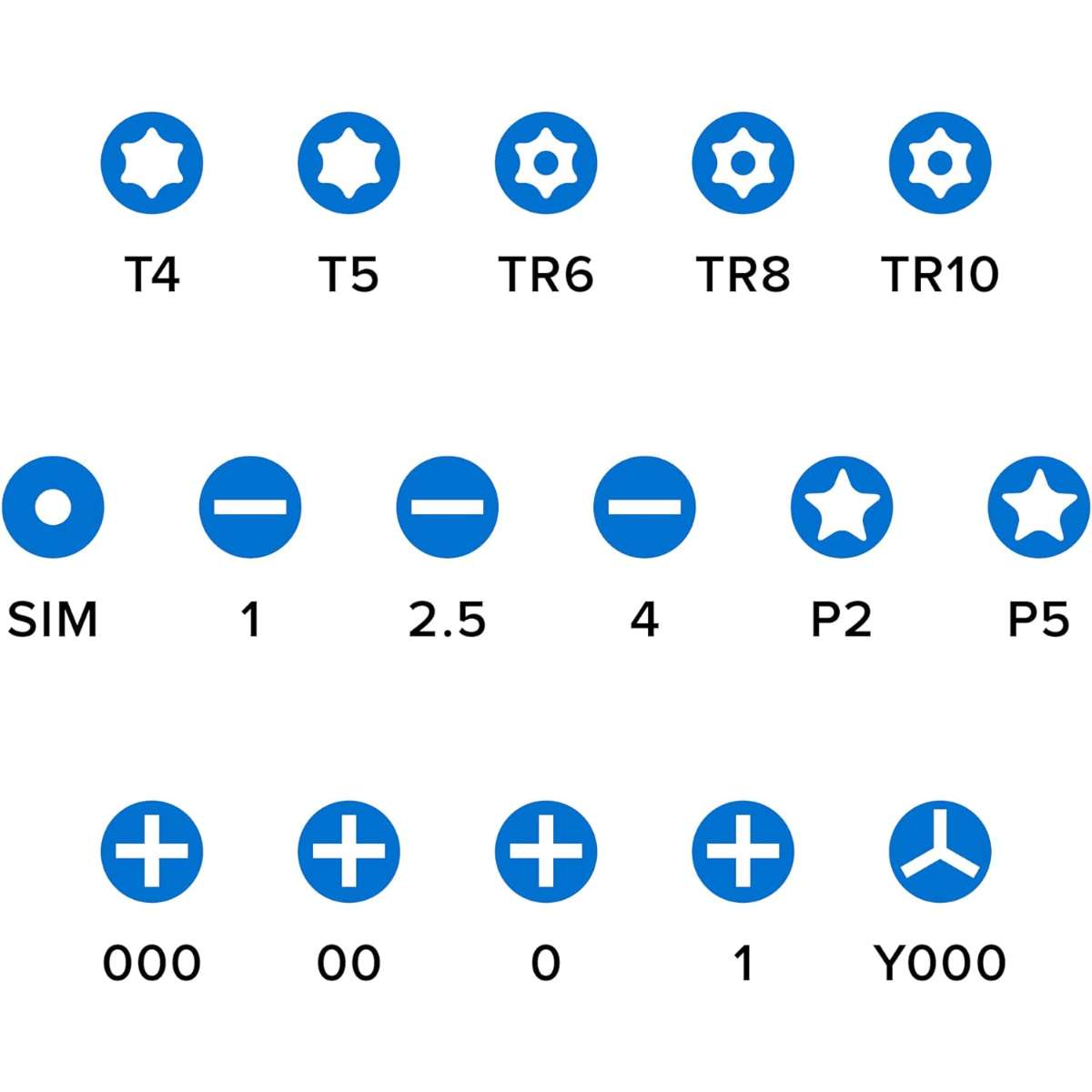 COMPLETE: This set contains a variety of tools - Besides various opening tools, it includes 16 precision bits (4 mm) and a precision screwdriver with a magnetic bit socket, knurled grip, and swivel top for easy operation.