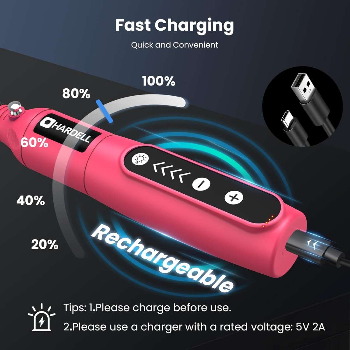 【Quick USB Charging and Longer Running Time】The cordless rotary tool comes with a 4V rechargeable battery that can work continuously for 150 minutes. A single charge can be used multiple times, making it stress-free and convenient. Battery-powered rotary tool allows you to work one after another. (The indicator light will turn green when fully charged)