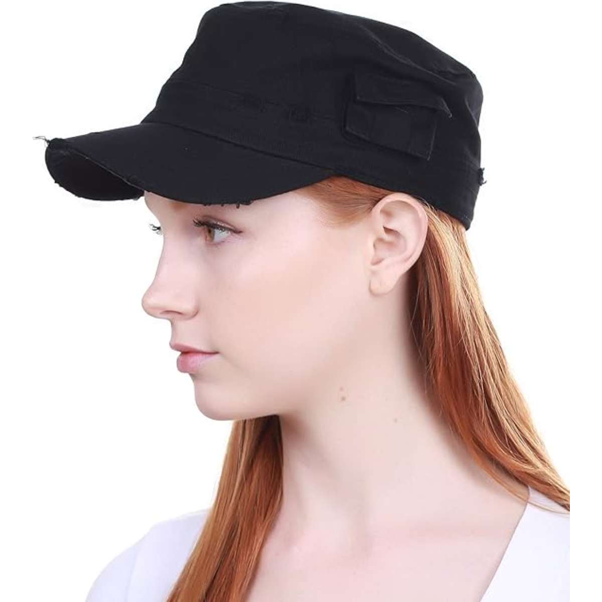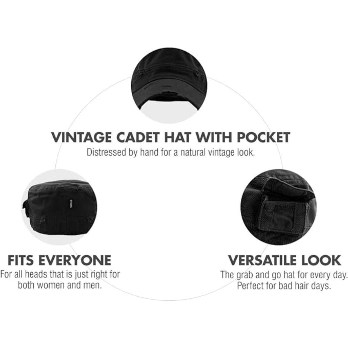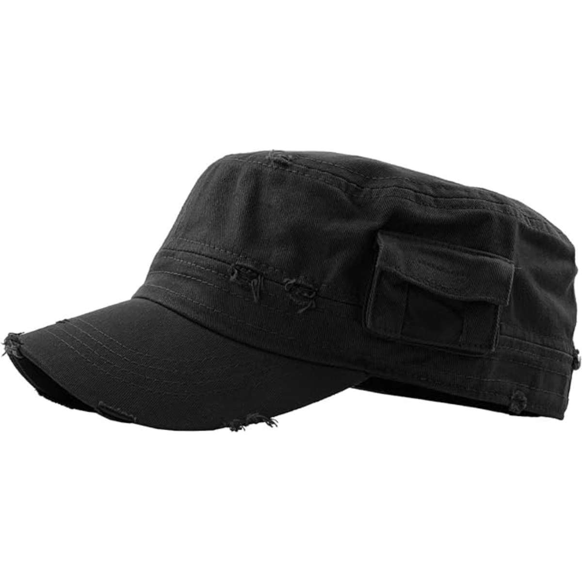 THE HAT: 100% Cotton. Pure Cotton Twill Classic Cadet Army Cap. 4 Sizes Available - Small (7 in)(56.5CM)/ Medium (7 1/8 in)(57CM)/ Large(7 3/8 in)(59CM)/ X-Large (7 5/8 in)(61CM). Flat Top / Fitted Size / Semi Pre-Curved Visor. GREAT UNISEX DESIGN FOR BOTH MEN & WOMEN. EXCELLENT QUALITY & DETAILED CONSTRUCTION.