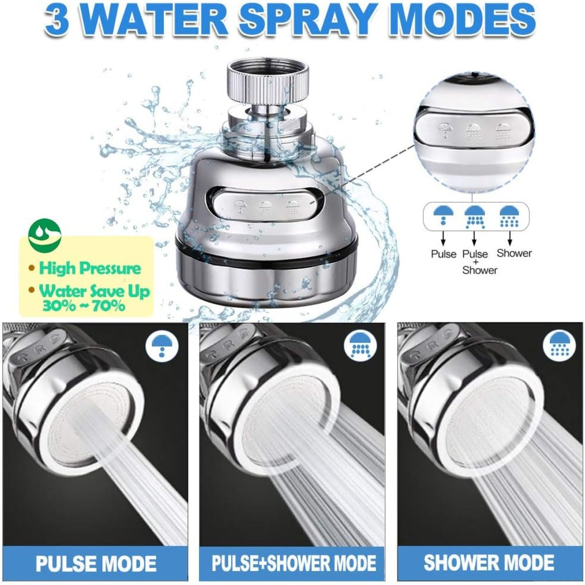 【Environmentally & Energy-Saving】:The faucet booster shower head adjusts water from stream to spray. Water mixed with air provides high pressure water and strong spray, it is effectively saving energy and reducing water consumption, good for environmental protection and energy-saving. Powerful water momentum increase water pressure, making your job become easily and functionally. Water saves up to 30%-70% compared with standard bubble faucets.