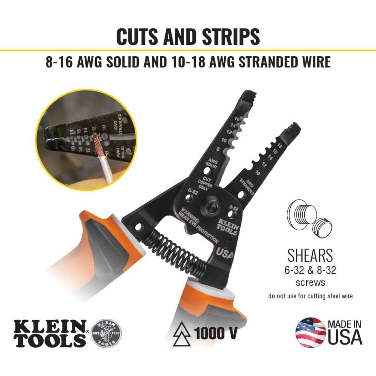 Three-part insulation with underlayer on the pliers and wire stripper provides warning sign that insulation may be compromised. VDE Certified