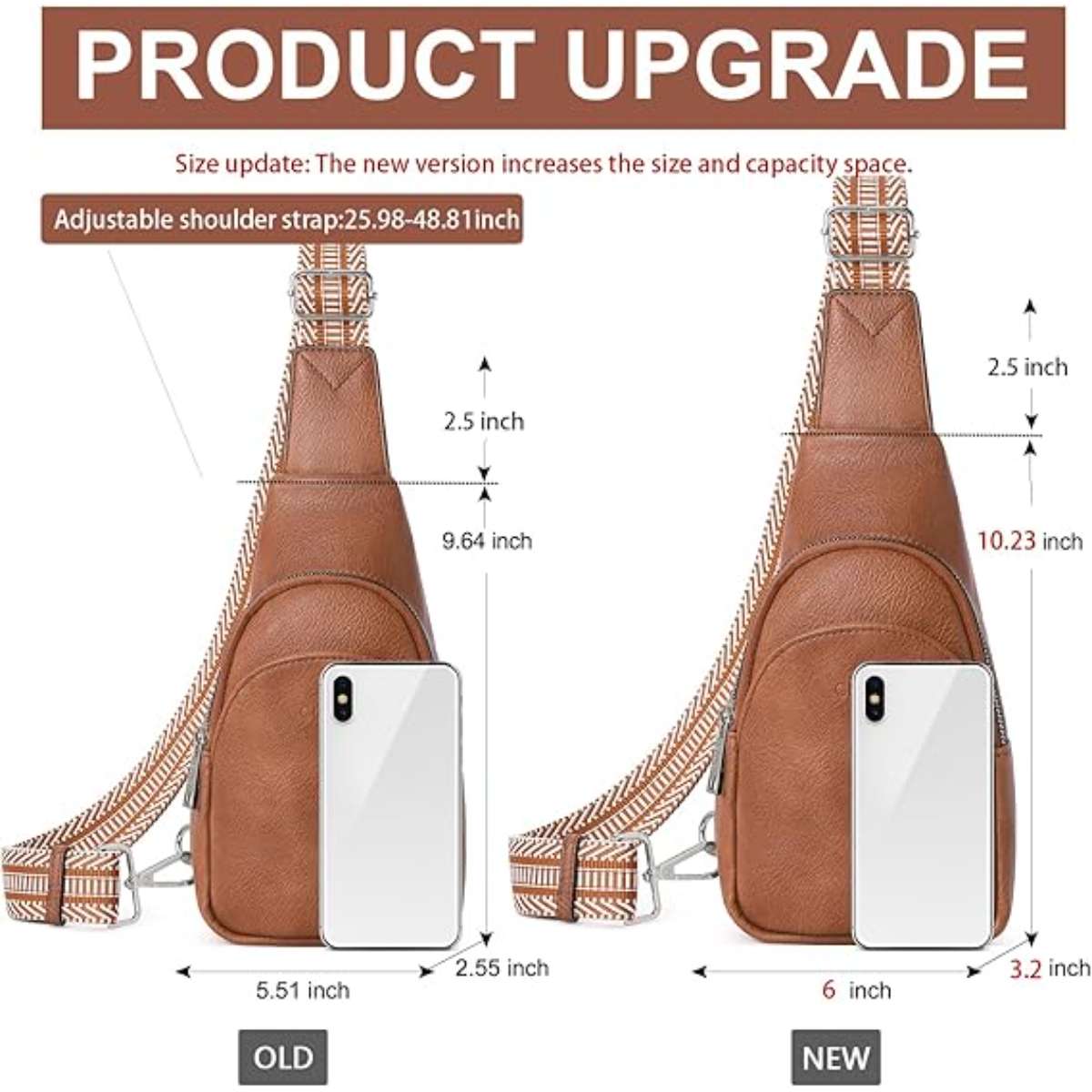 ► Perfect Size - This lightweight and compact women's sling bag has a length (L) of 6 inches, a width (W) of 3.2 inches, and a height (H) of 10.32 inches. The adjustable shoulder strap length is 25.59 inches to 48.03 inches, which is small and lightweight to carry.