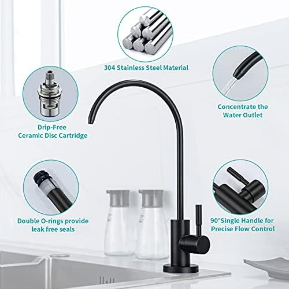 【High-grade Ceramic Disc Cartridge】: The reverse osmosis faucet uses a ceramic disc cartridge. A high seal performance cartridge valve provide you a smooth stream and low probability of leakage.