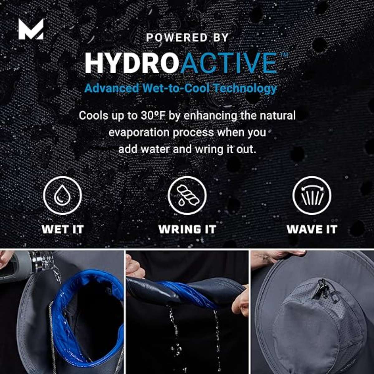 THE COOLEST TECHNOLOGY - With HydroActive Wet-to-Cool Technology, our fabric cools up to 30 degrees below average body temperature in under 1 minute & stays cool for up to 2 hours. Activate & reactivate in 3 steps: wet it, wring it out & wave it.
