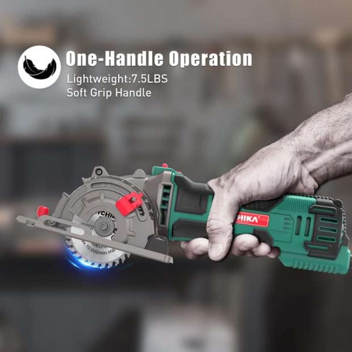 【3 BLADES AND COMPACT】: HYCHIKA mini power circular saw is equipped with 3 different blades – 1x30T HW for wood cuts, 1x36T HS for metal cuts, and 1 grit diamond blade for tile cuts. Its small size and weight make it a great addition to your toolkit, perfect for DIY projects around the house and in the workshop. (1"for Wood; 3/8"for Tile; 3/16"for Aluminum)