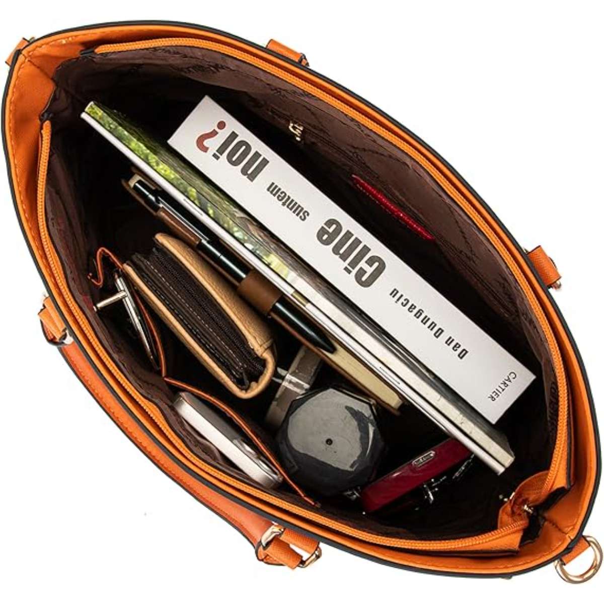 [Superb Material] This womens tote purse made of PU leather. The stitching is well made as smoothly to touch. The linging of this tote bag purse was used the supreme cloth. There's no chemical left in this women's purse. 3pcs in 1 set, it is convenient for you.