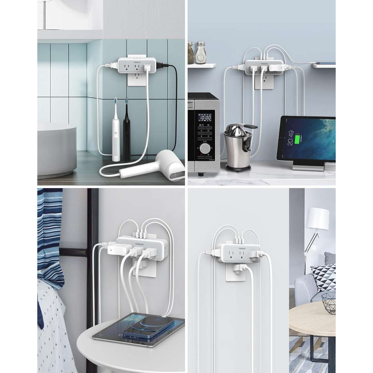 Space Saving: Plug this multiple plug outlet on the top of outlet without blocking the other below, and create a charging station in your bedroom, kitchen, living room or any area with limited outlets; Fit for both GFCI and standard receptacles