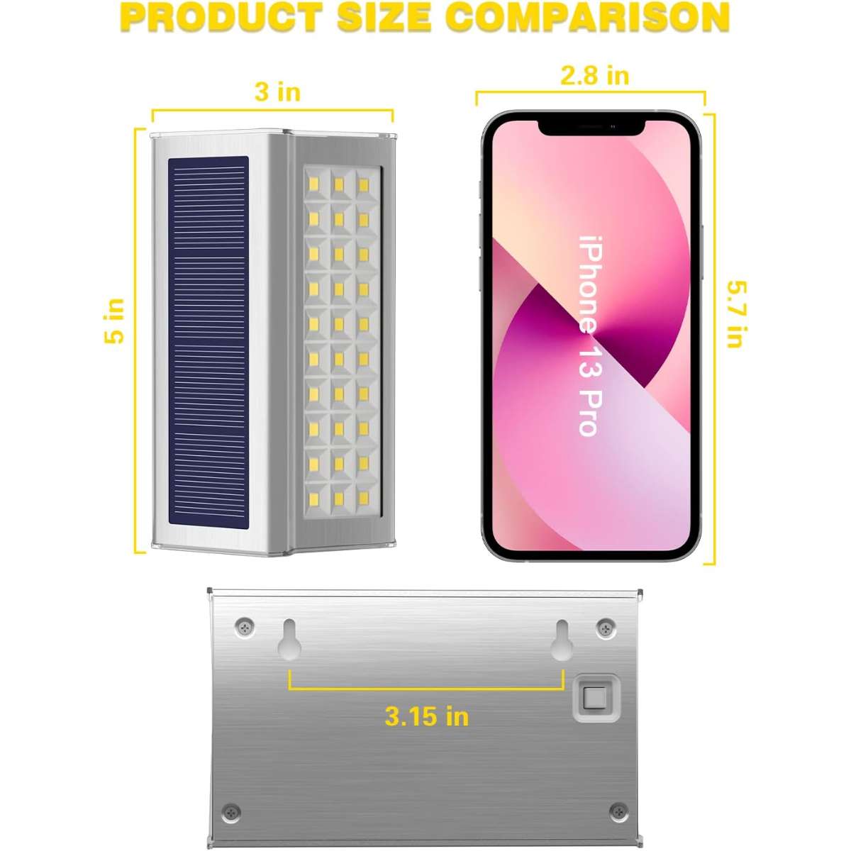 ☆Bright 30 LED Solar fence Lights☆ Solar powered outdoor lights built-in 30 high quality LED beads can be easily illuminating the pathway, stairs and fence to improve the safety of you and your family and property at night. Not a super bright solar light, but 30 lumens brighter than other 3LED stainless steel solar lights.