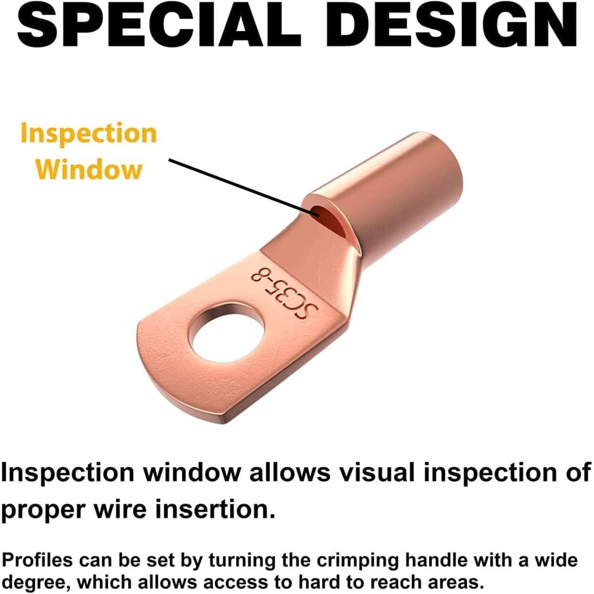 ❀【ROTATE CRIMP DIES】The professional cable terminal crimping tool has 6mm²/10mm²16mm²/25mm²/35mm²/50mm² (Similar to AWG 8, 6, 4, 2, 1/0) wire size crimping, using rotating heads with a spring loaded locking pin to keep the heads in place.
