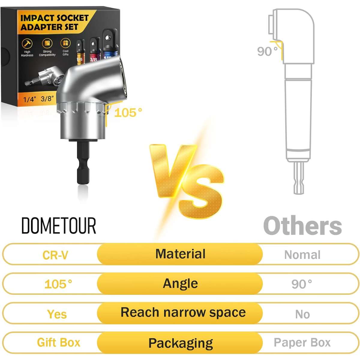 [105°RIGHT ANGEL] Socket adapter are very suitable for light drilling, screw, low speed driving and other work, such as cordless drill, ratchet manual screwdriver, etc. Socket adapter can be attached to a power drill or drill adapter, socket adapter can be extended to more narrow nuts, torque screws, etc. The 105°design is suitable for very tight spaces, and the design extends the cordless screwdriver's power -100 "/ lb, 400 RPM torque