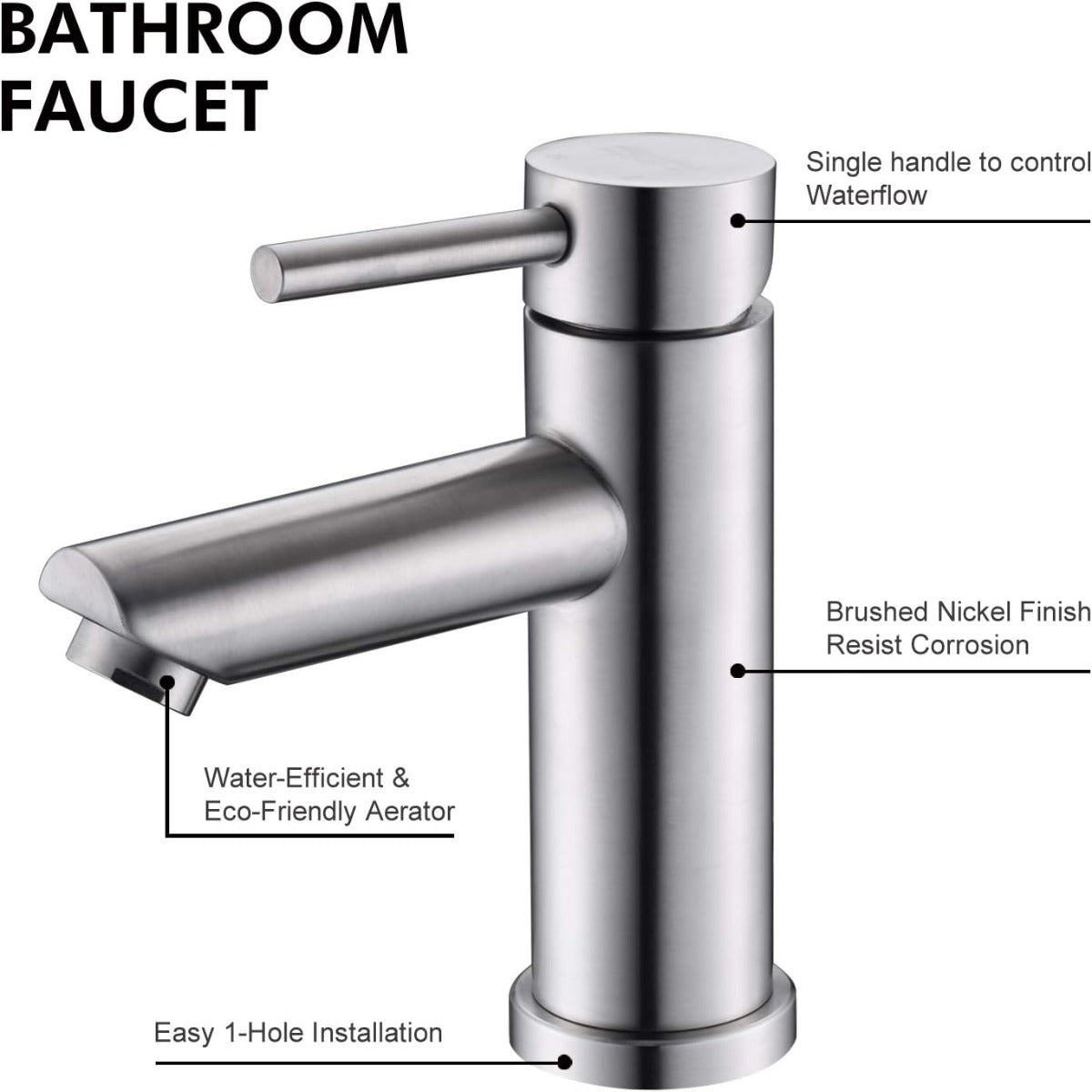 【Modern Design Bathroom Sink Faucet】Beautiful Brushed Nickel finish, build to resist scratches, corrosion and tarnishing