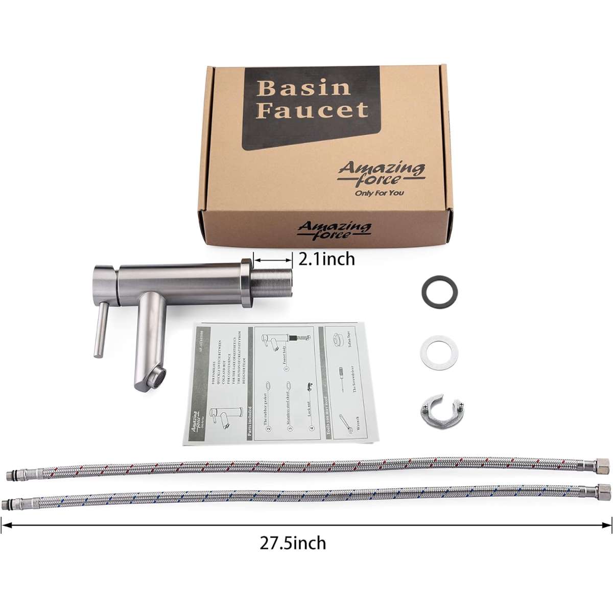 【Package Included】1 hole installation, 23.6 inch hot and cold faucet supply lines are included in the package.Pop up strainer stopper is not included.