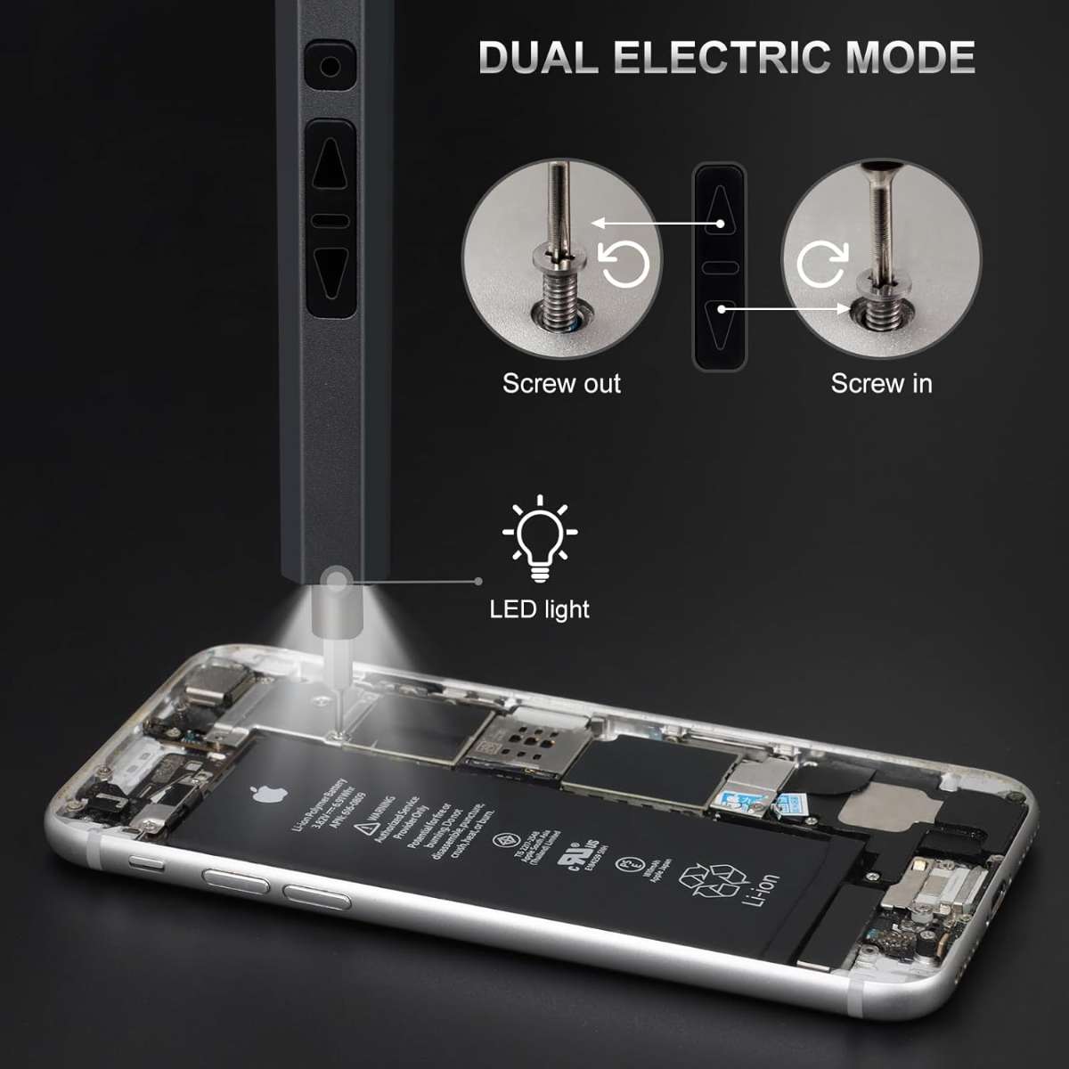 【Magnetic Screwdriver Set】We have added 2 magnetic tools in this mini electric screwdriver set to save your time and energy, making your fixing job easier. The magnetizer demagnetizer tool helps strengthen the magnetism of the screw driver tips to grab screws, or weaken it to avoid damage to your sensitive electronics. The 5.7 x 3.3" magnetic project mat keeps all micro screws and parts organized, preventing loss and mess