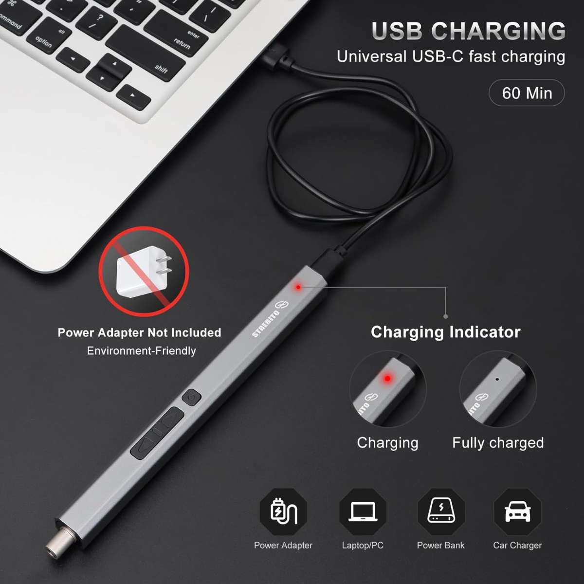 【Rechargeable and Long-Lasting】This cordless mini electric screwdriver powered by 350mAh lithium-ion battery which has undergone 28 battery-related tests to ensure safety and a longer working time. With a fast charging time of 60 minutes, this electric screwdriver rechargeable provides continuous power for your projects. And universal Type-C charging interface makes charging convenient for the precision electric screwdriver