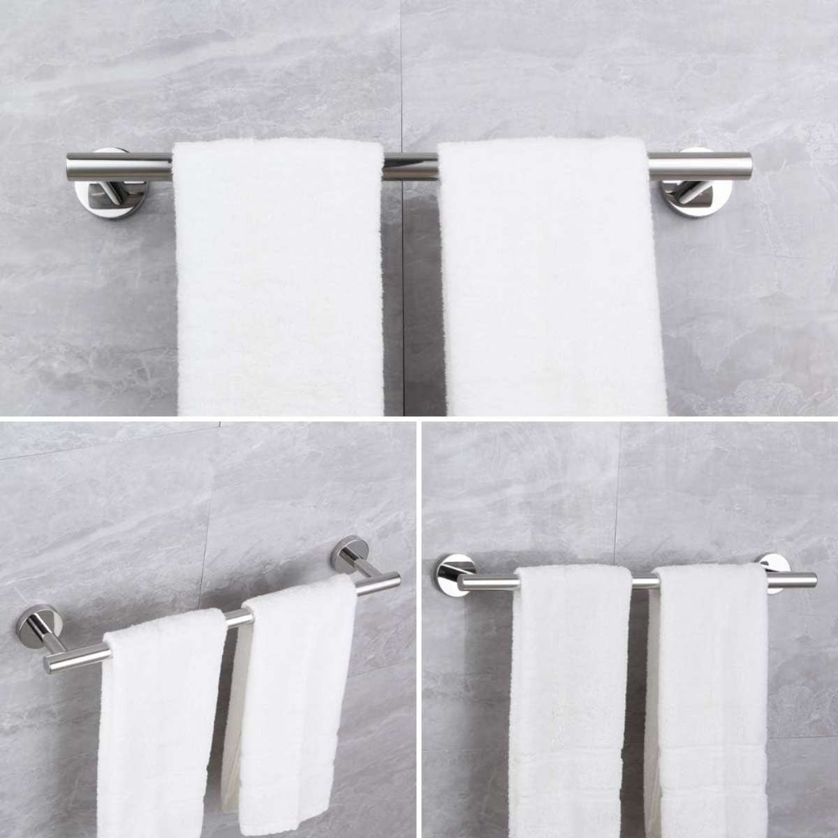SPACE-SAVING TOWEL BAR - The towel bars are a handy place to store your towels that keep your towels dry and within reach. You can mount it to bathroom wall, sheetrock walls or wood door.