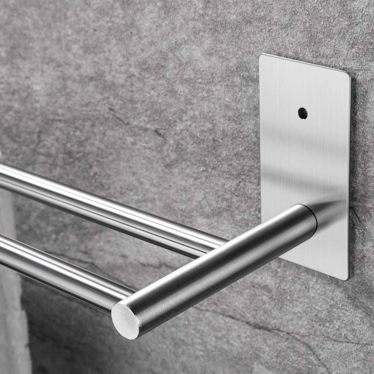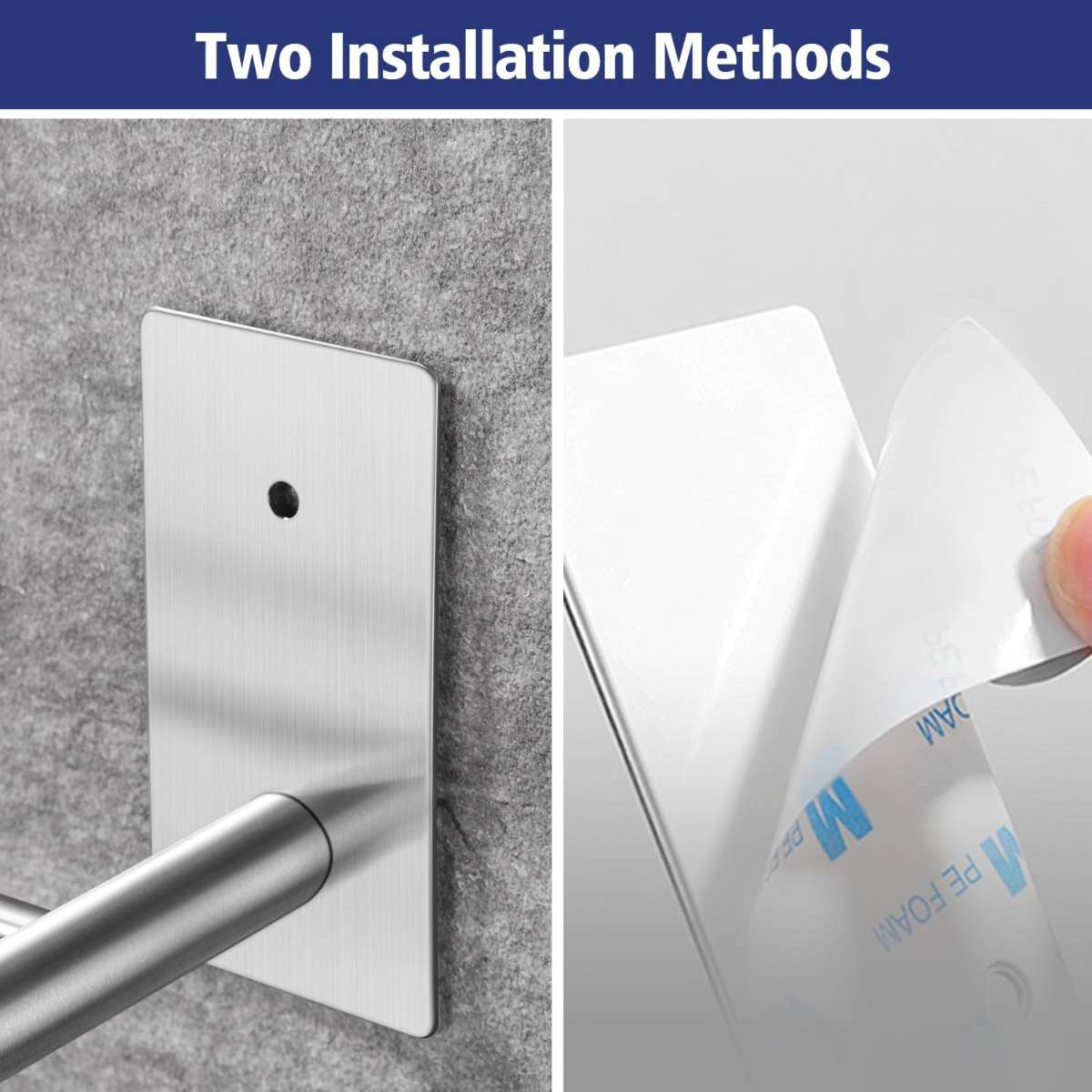 Easy to Install: Keep the smooth wall clean and dry first, then peel off the adhesive film, stick the towel holder and press it for a few moment. For good durability, it would be better to use this bathroom accessory after 24 hours. And drilling is allowing, you can choose the best installation according to needs.