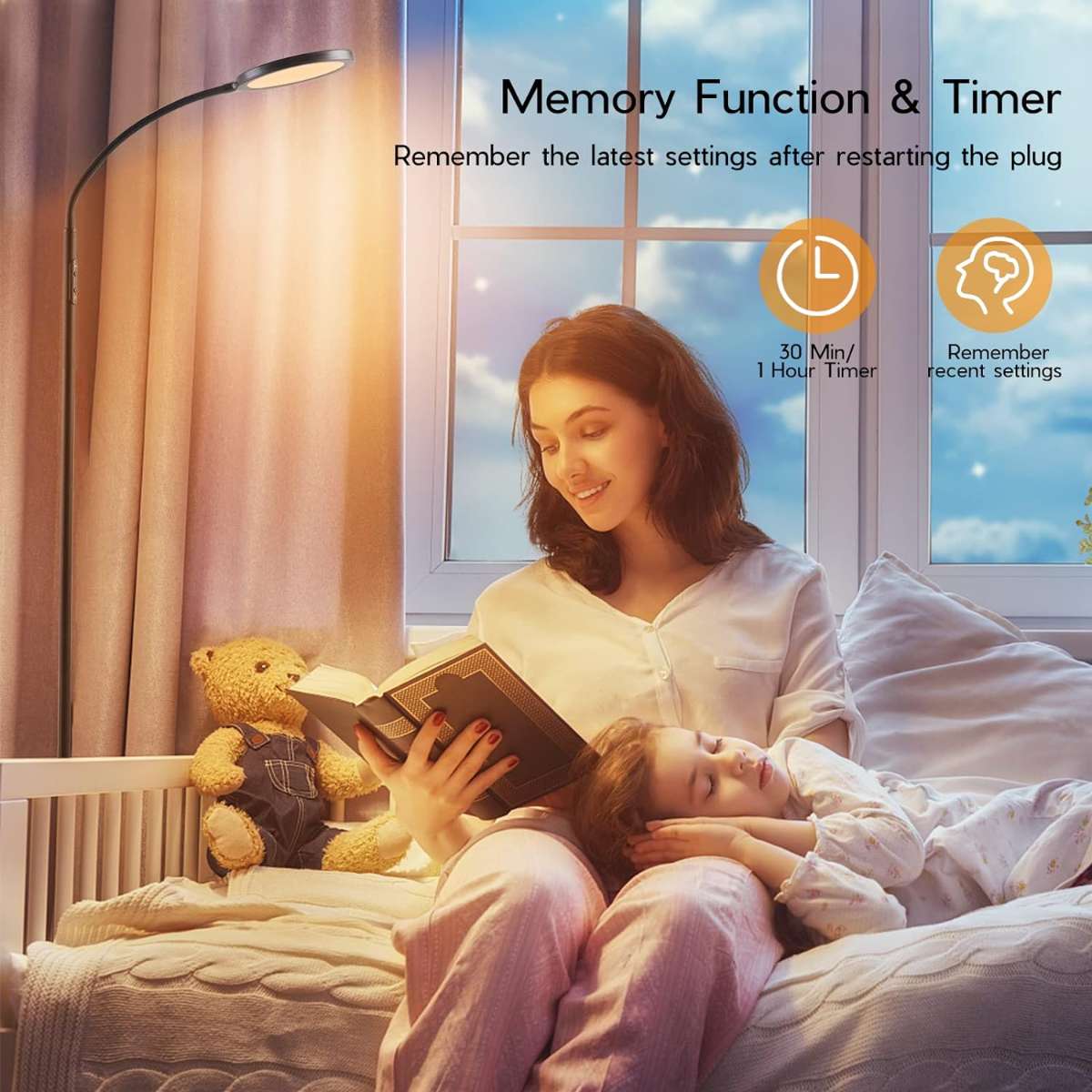【VERSATILE & DIMMABLE LIGHTS】This lamp for living room allow to customize your favorable color temperature by choosing from 10%-100% stepless dimmable brightness and 3 colors temperatures (warm, warm white, white) from 3000K to 6500K. The floor lamp for bedroom has a memory function to remember your last brightness setting when you turn the lamp on. Floor lamp can be set timer to turn off automatically after 30 minutes /1 hour