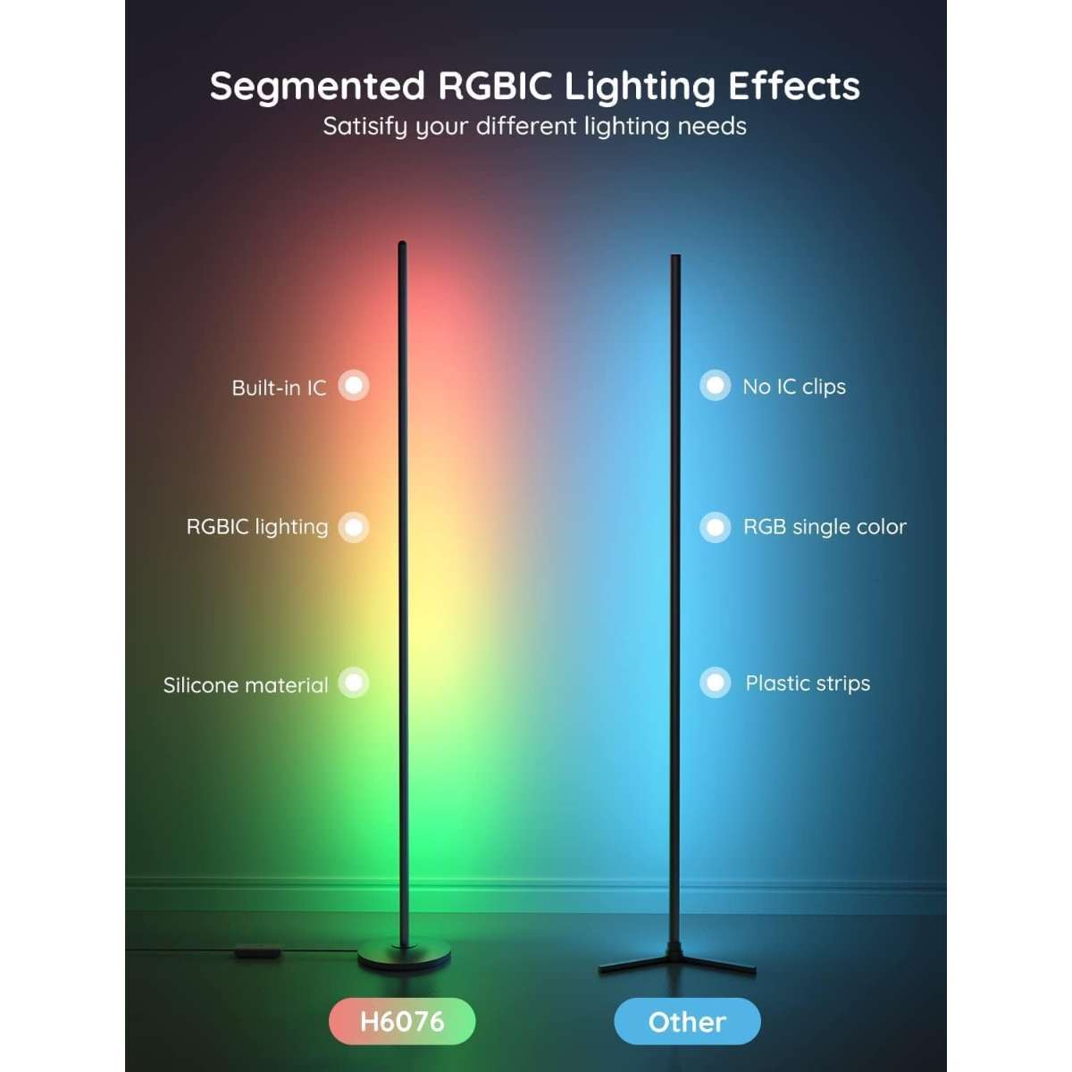 Dynamic RGBIC Color: Unleash your creativity with Govee RGBIC technology, you can customize each segment color base on nature, festival and emotion, and the floor lamp will display multicolor effects simultaneously, suitable for holiday and family gifts.