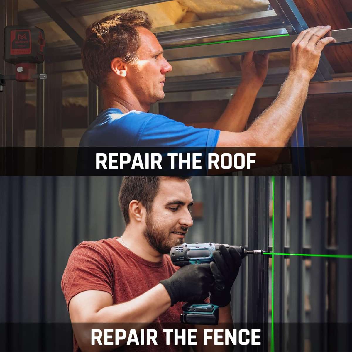【4 Gears Brightness Adjustble】 Under the power saving mode, you can adjust different green light brightness according to different usage environments to work better with you. Under the same environmental brightness, the green laser horizontal line is 4 times that of the red beam, and the indoor working distance can reach 100 feet, and it can also be used outdoors.