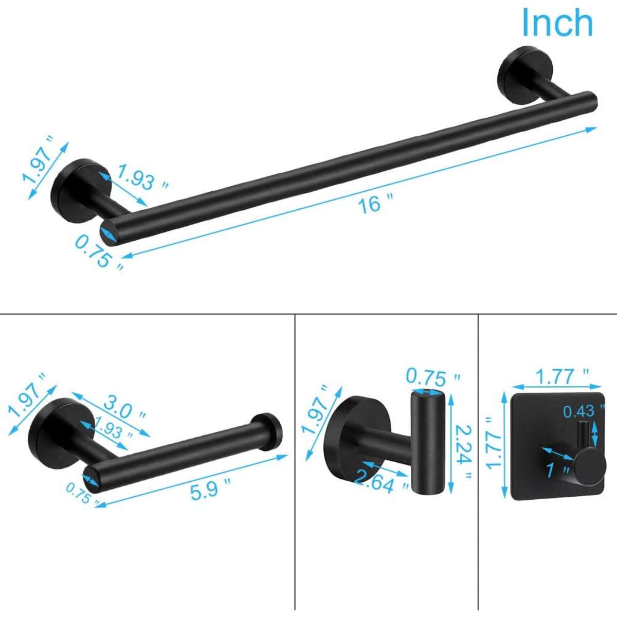 TocTen 5-Piece Bathroom Hardware Set (Matte Black, 16")