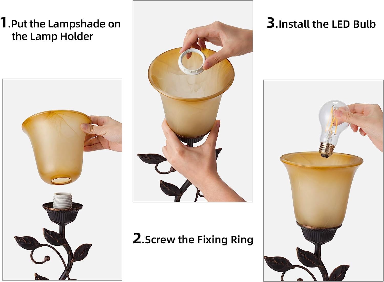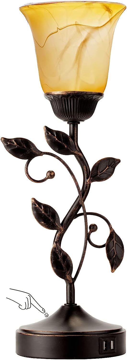❤【Unique & Creative Design】: Amber glass shade resembles a bloom with crimped top opening, matches the creative design of whole lamp perfectly. Gives off centralized and stable glow, this decorative bedside lamp cultivates warm cozy ambience, sever as accent lamp, dorm lamp or side table lamp.