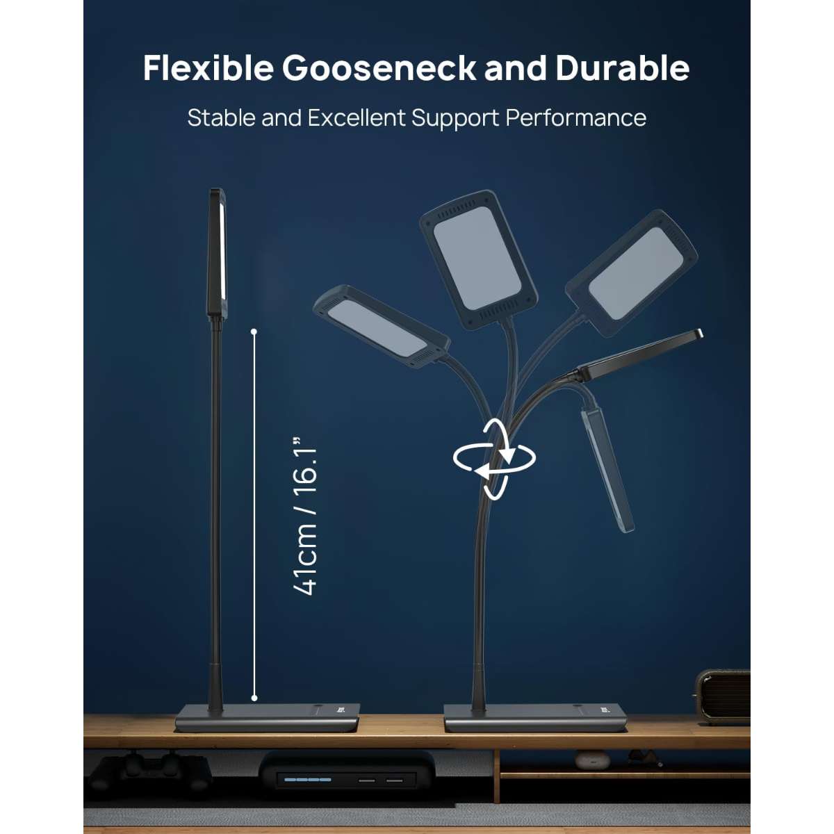 【Flexible Gooseneck Lamp】: This table lamp features an ultra-slim base (0.63” thick) and a low-profile design, fitting perfectly with your home or office decors. The flexible gooseneck (16.1”, fully extended) allows you to bend the lamp towards wherever you want.