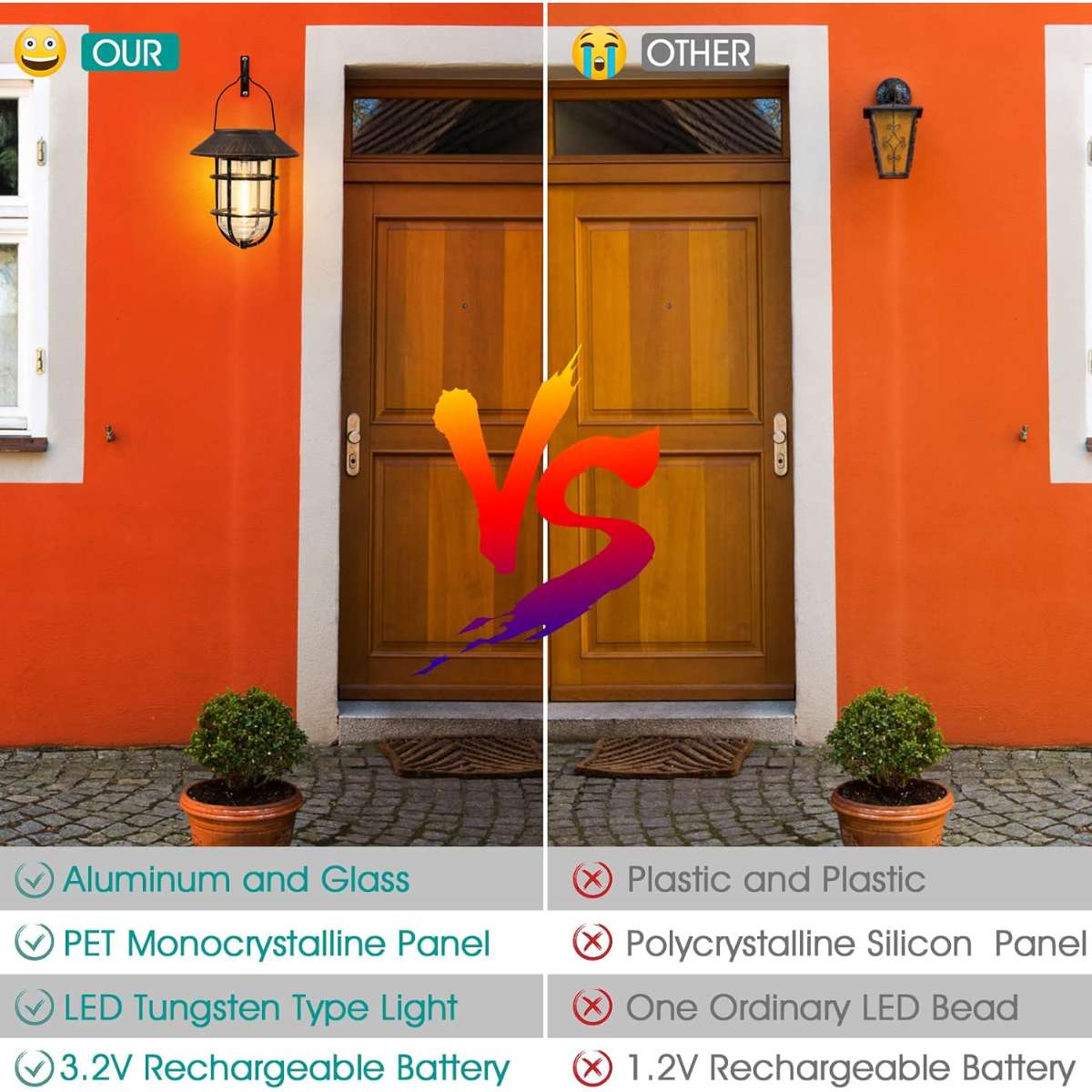 Water and Dust Resistant:Solar lights outdoor are made of quality metal material to ensure solar lantern can stand up to the elements and bad weather.P65 waterproof rating makes sure solar lights to withstand in rainy day,hot day, frost day and snowing day without any leak or trouble