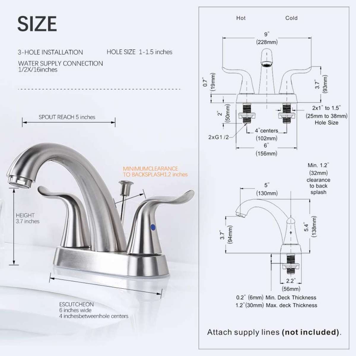 WOWOW Bathroom Faucets 2 4-Inch Central Bathroom Sink Faucets
