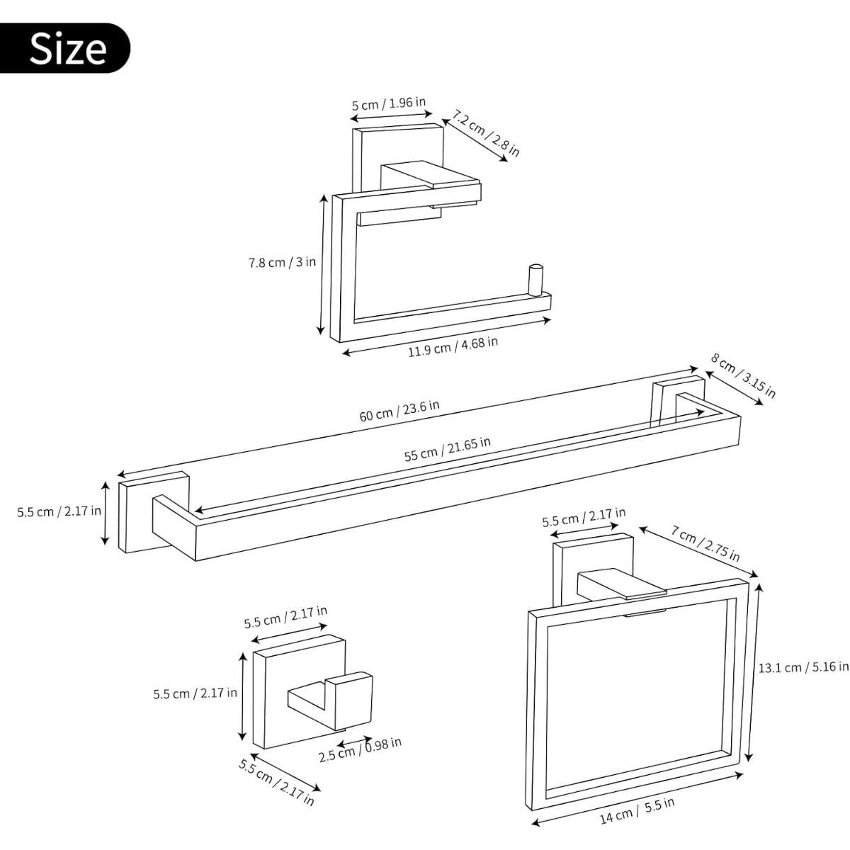 Concealed Screw: The bathroom hardware accessory set features unique square shape and concealed mounting hole add a touch of modern design to your bathroom. Screws are invisible after installation - beautiful and elegant look.