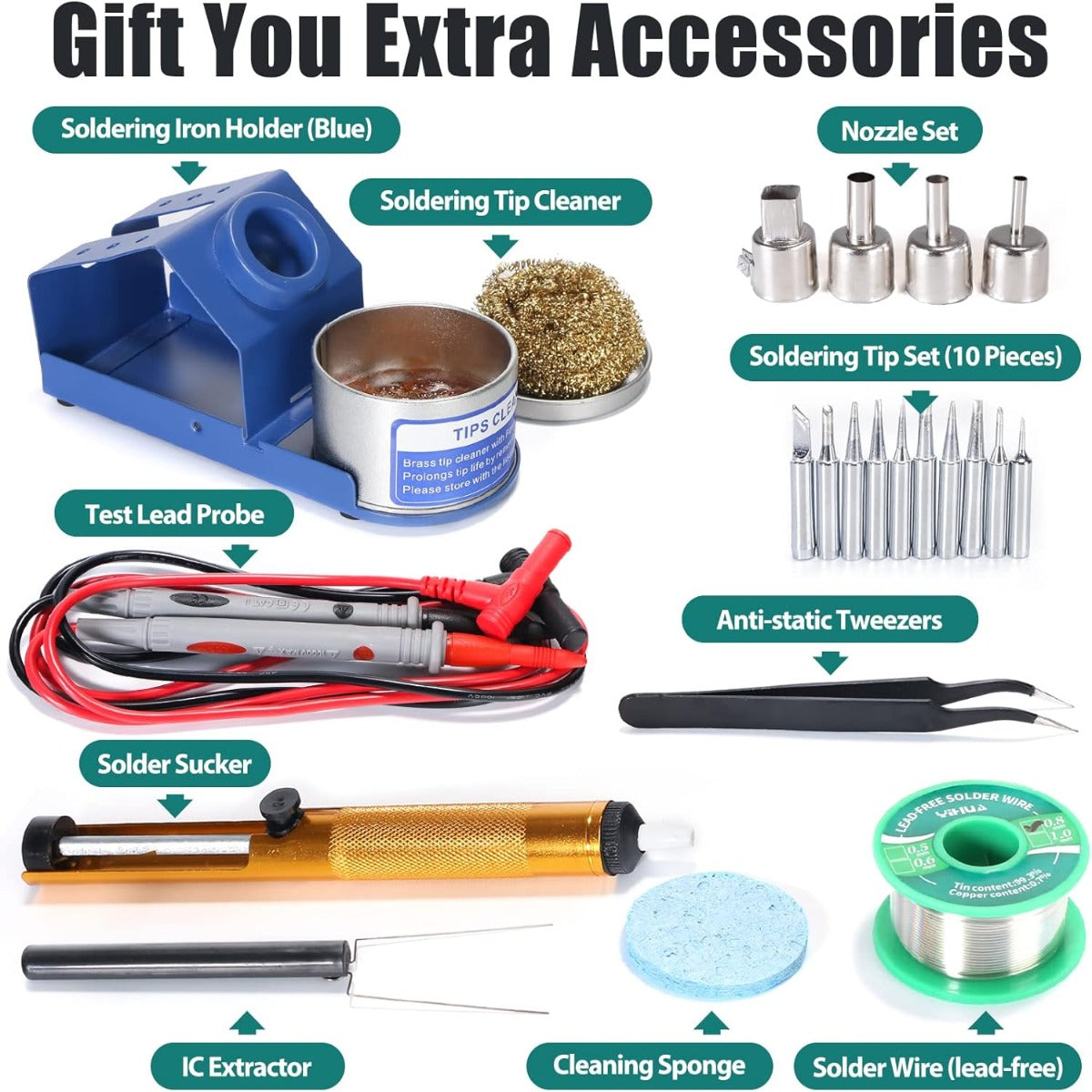 Precision – Both the soldering station and the hot air rework station comes with high precision PID temperature stabilization function to maintain them at the set temperature. This way, you can enjoy a more efficient and smoother soldering/rework experience.
